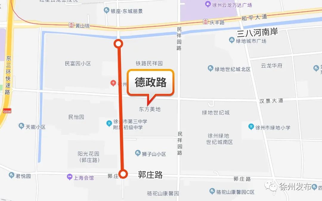 2021年10月19日至11月5日,对德政路(郭庄路至三八河南岸)实行交通限制,临时占用东侧部分车行道分段施工(占用靠人行道道路 4.5米,留4.5米道路供非机动车通行),围挡范围内禁止车辆、行人通行;过往机动车从西半幅道路通行;