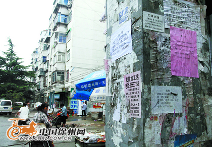 中国徐州网-彭城晚报消息 (记者 郑毅) 昨天上午,住在铁路三宿舍的孟先生反映,小区野广告泛滥,成了非法小广告的“重灾区”。