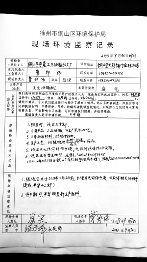 对于该提炼点负责人在采访中,一再声称工业油脂加工点不需要环保审批的说法,铜山区环保局大彭中队陈队长表示,这种说法是错误的。只要是生产企业,涉及到污染,都必须到环保部门审批。