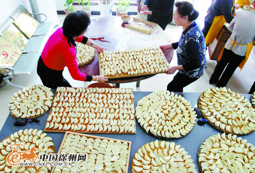中国徐州网-彭城晚报讯 (记者 陈羿帆) 350斤面粉、100斤猪肉、250斤萝卜……为迎接即将到来的重阳节,昨日上午,云龙区子房街道办事处铁桥社区门前小广场热闹非凡。由社区党支部举办的第22届饺子宴如期举行,300多位社区老人欢聚一堂,吃饺子、看演出、提意见,其乐融融。