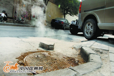 中国徐州网-彭城晚报消息 (记者 路远) 昨日上午,李女士来电反映,都市家园门口一带约50米长的路面,窨井盖和水泥路面裂缝都向外冒着热气,地面温度得有40℃,沿街门面不得不开着空调、风扇营业。