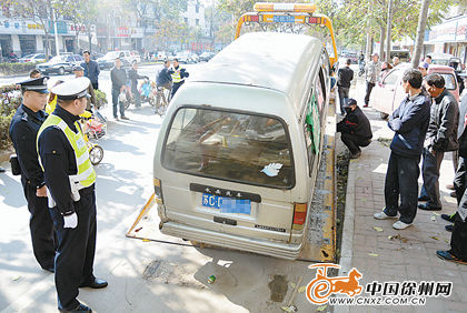 鼓楼交警大队杨帆副大队长介绍,昨天,他们与城管部门联合执法的过程中,接到市民反映,决定对这几辆长期停放在慢车道上的车辆进行清理。按照规定,慢车道上尽管划有停车线,但只是供车辆临时停靠的,特别是这种没有牌照,又长期停放占用道路资源的车辆,交警部门发现后会及时清理。