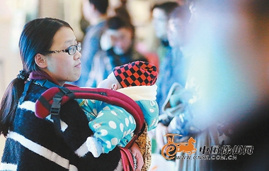 带着孩子陪爱人前来求职。