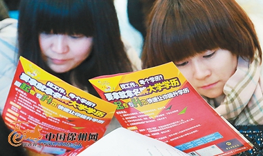 家住铜山区的22岁的女生李丹和23岁的李琦琦昨日结伴而来。两个小伙伴时而在自带的小本子上认真记录,时而抬起头交头接耳,互换意见看法,态度非常谨慎。