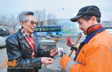 如今,老人正在设计“第五代”好人卡。老人说,希望以此表达对好人的感谢,带动鼓舞更多的人加入到助人为乐的队伍。