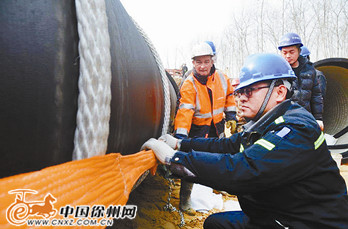 技术人员指导安装管子第14标段正在施工的地方距离徐州市第二地面水厂不到两公里的距离,基本上是原水输送线的末端,也是非常重要的地方。承担建设任务的是徐州禹坤水利建设工程有限公司,管材供应商是圣戈班(徐州)管道有限公司。