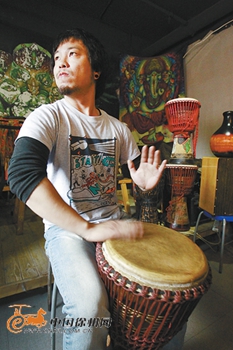 在打鼓时,十坎的表情很陶醉,在他看来,打鼓能让自己释放压力,感受到自由的激情和快乐,“虽然收藏了很多非洲鼓,但还没有去过非洲。我希望五年之内能够亲自到非洲去看一看,感受下现场原汁原味的非洲鼓表演。在此之前,我想先去周围稍近些的尼泊尔、印度这些国家,吸收不同国家的传统音乐风格。”
