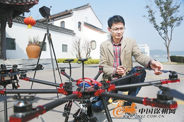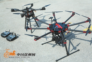 “这架‘无人机’共有8支螺旋桨,直径1.2米,重量在10公斤左右,能够连续进行18分钟的航空拍摄,还有夜间拍摄模式。”郑茂金说,首次组装获得成功后,他俩又进一步改进了技术,制作了一架6支螺旋桨的“无人机”,航行时间提高到了半小时,并且用它对徐州的奥体中心、云龙湖、音乐厅、大龙湖及徐州医学院等处成功进行了航拍。