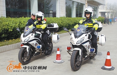 昨天下午,记者在湖北路徐州体育中心看到,交警支队机动大队的几位民警,正在驾驶几辆摩托车进行训练。川崎650摩托车车身壮,提速快,排气筒发出的声音震撼,制动性好。特别是民警在驾驶这种摩托车的时候配上一身新式服装,更显得特别拉风。