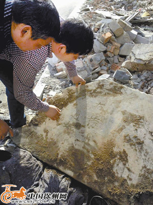 王馆长介绍说,这堆建筑垃圾在这儿堆了一年多,是当初中阳壹号开发后堆放的,估计石碑也是当初挖地基时发现的。他后来跟负责开发中阳壹号的开发商进行了联系,对方称当时确实发现了这两块断碑,而且也找人看了,看到一面写的是学校,就没有在意。“这一片原来是文庙的位置,所以这块石碑应该就是在这地下发现的。”王馆长说。