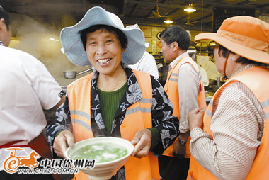 中国徐州网-彭城晚报新闻热线85608110消息(记者 张传宝) 从5月1日起,铜山新区老磨坊羊肉馆免费为片区四五十位环卫工人提供早餐,一人一碗羊肉汤烧饼管饱,热腾腾的羊肉汤和满口香的烧饼传递着人间暖意。