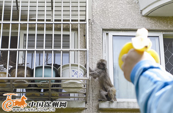 王师傅手里拿着一叠煎饼,想给猴子喂食,但猴子压根不感兴趣。倒是2单元4楼女业主从窗口扔出的苹果、巧克力,让猴子吃的津津有味。有意思的是,它吃苹果时还先把皮啃掉再吃。