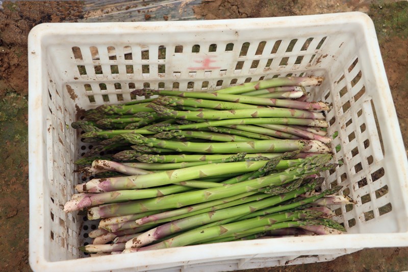 在丰县赵庄镇大刘集村芦笋种植基地里,75岁的村民李老太和一群妇女正娴熟地采摘已经长成的芦笋。看到一筐筐摘下来的芦笋,李老太抑制不住内心的喜悦:“芦笋每公斤保底卖到6元,高了可以卖到14元左右,现在每天采摘下来的新鲜芦笋供不应求,在基地干活的村民每天能挣近百元工资。”
