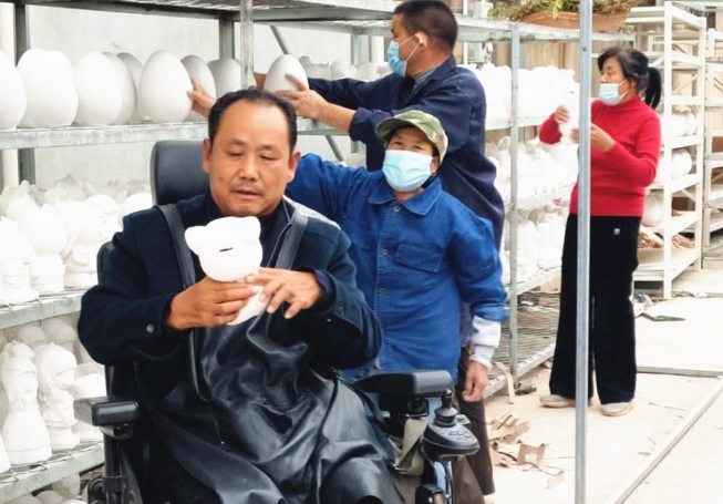 长时间钻研制作模具的过程中,何培训对残疾人就业的难处更加感同身受,然而他也发现,石膏储蓄罐有许多产品都是机器无法做的,只能通过人工制作,是一项非常适合残疾人的工作。于是,何培训将家改造成厂房后,为30多名残疾人提供了就业岗位。为了让这些残疾人能安心学习,掌握一技之长,不断提高生产效率,何培训还专门聘请了两名健全村民为这些残疾工人“服务”,从饮食起居到卫生管理方方面面免除他们的后顾之忧。