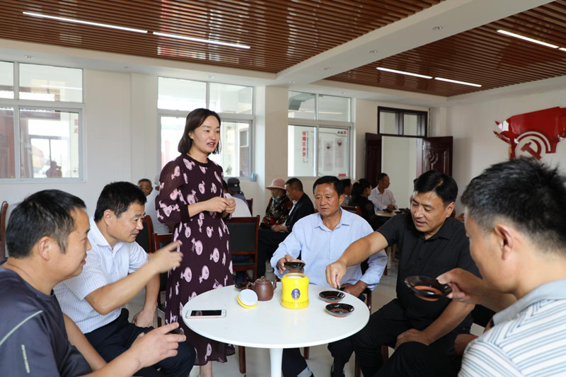 在徐庄村民主协商议事现场,镇村干部和村民们围坐在圆形桌子一起,品尝着香味扑鼻的红茶。群众亲切的把村庄“茶馆”称之为民主协商“议事馆”,即以“茶馆”的形式把村民聚在一起,聊天议事,并在各个村民小组流动,打捞议题,该“茶馆”包含了了解民情、收集民意、解决民忧,引导村民参与到村公共问题的讨论,共同解决村里面临的问题,成为群众提意见和建议畅通的"绿色通道"。