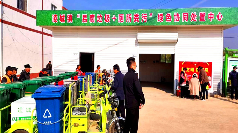 “小康不小康,厕所算一桩”。凌城镇下辖25个村(社区),235个组,1.75万户,8.4万人。“现在把厕所改到了屋里,干净卫生还方便,这对老百姓是一件好事。”群众纷纷夸赞这件“好事”,但如何做好农村改厕的后半篇文章,实现农村无害化卫生厕所“粪污满了有人抽、抽了有人用,坏了有人修、保持正常用”。凌城镇系统谋划,根据镇域人口、村庄分布情况,进行科学布局,在龙河村、胜利村、李圩村、新楼村等4个村,建设4个“易腐垃圾+厕所粪污”绿色协同处置中心。