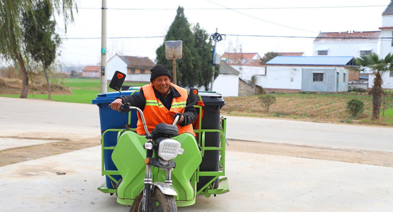 每天早上6:30,龙河村的垃圾分类收集员尹步宽驾驶着垃圾分类收集车逐户收运垃圾,将易腐垃圾运送到“易腐垃圾+厕所粪污”绿色协同处置中心。“每天能收200公斤烂菜叶、剩饭等易腐垃圾。大家会养成习惯的,现在分类好的,还有奖品呢。”尹步宽说。