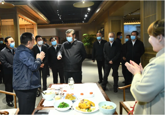 习近平总书记率先垂范。广东的自助餐、河北的大盆菜、古田的红米饭、梁家河的油馍馍……考察调研时的一餐一饭,处处彰显节俭朴素的优良作风。