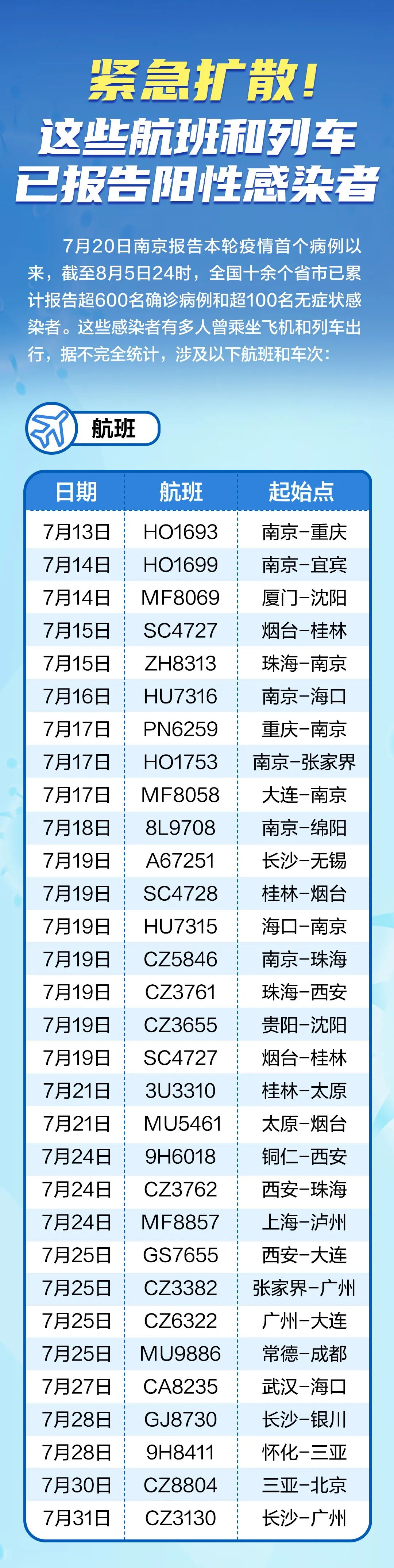 更新扩散!这些航班和车次出现阳性感染者,轨迹有交集请报告