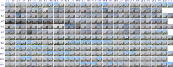 蓝天日记图由省环境监测中心里的能见度仪拍摄。省环境监测中心大气部副部长钟声介绍,2013年能见度仪开始拍摄天空照,每30分钟拍摄一张,至今累计拍摄有效照片近7万张。“能见度仪固定方位拍摄天空,直观记录天的颜色,显示空气质量,然后选取每天上午10点拍摄的照片作为蓝天日记图。”