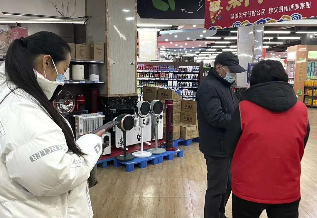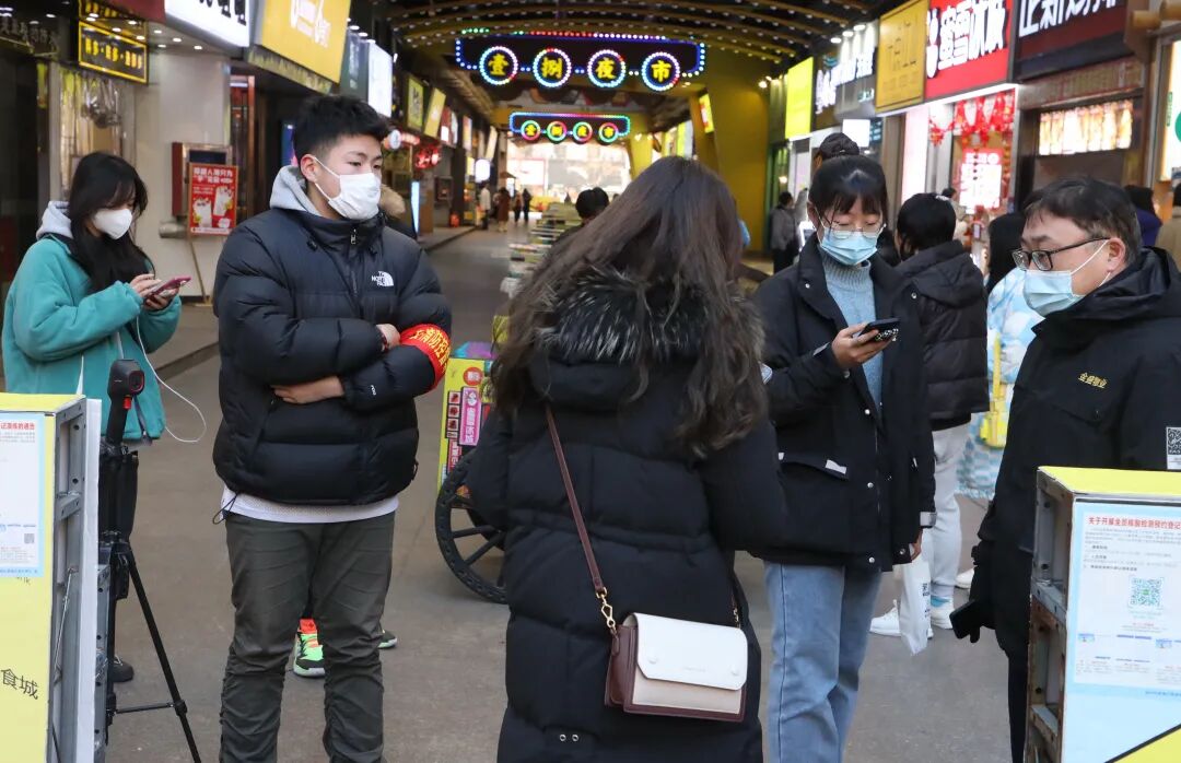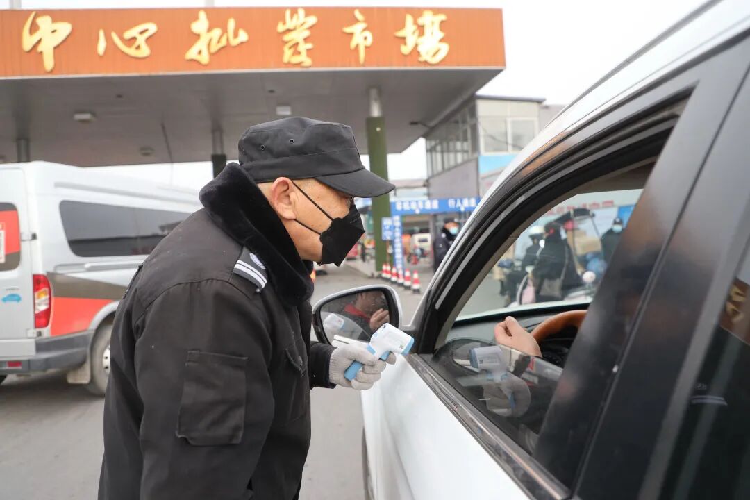 ▲进入市场需要佩戴口罩、测体温、出示“两码”