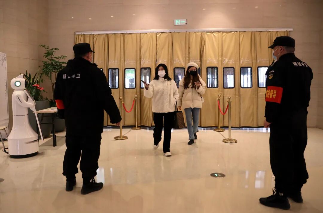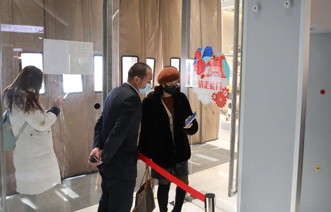 ▲入口有保安检查“两码”,并安装了智能测温装置