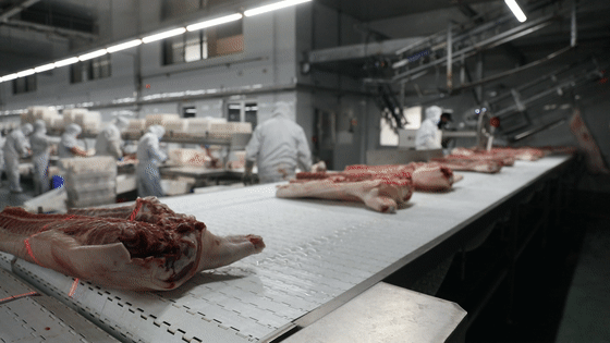 在徐州凯佳食品有限公司生猪屠宰自动化车间,工人们分工明确、手法娴熟,只需几秒钟就可以快速完成一道工序。