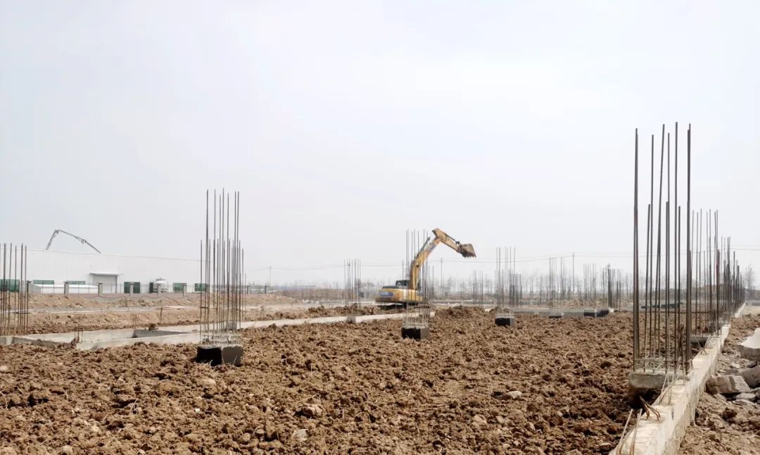 在宿羊山镇大蒜深加工产业孵化基地三期,现场一片繁忙,工人们正在紧张有序地进行还土作业。该项目于2月份启动施工,目前已完成8栋高标准厂房的基础建设,预计今年年底即可完成14栋厂房主体建设。