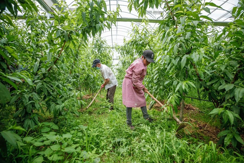 种植的品种,改成了黄金蜜系列、油蟠系列等优质品种。改进种植技术,加大种植行距,实现机械化作业。这几年,园内陆陆续续建了七八个联栋冷棚,“不仅可以规避雨水,还可以把黄桃上市的时间提前一周左右,价格也高20%到30%。”