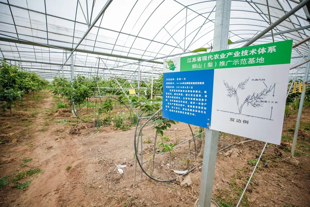 走进位于房村镇的江苏省现代农业产业技术体系铜山(梨)推广示范基地,苏翠梨促控设施栽培技术正在新建的8亩梨棚内实验。