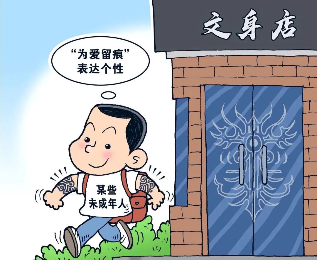 近年来,文身现象低龄化趋势愈发明显,在未成年人群体中的流行度不断增加。部分未成年人对文身缺乏理性认识,当随着年龄的增长逐步认识到文身具有易感染、难复原、就业受限、易被标签化等不良影响时,后悔不已。筑牢未成年人保护屏障,向未成年人文身说“不”,别让青春“被刺痛”!