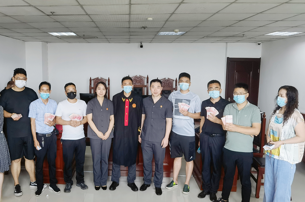 “感谢两级法院法官这么多天的辛勤付出,让我们实实在在感受到了法律的公平正义。”丁某等8人握着手中的现金激动地说道。