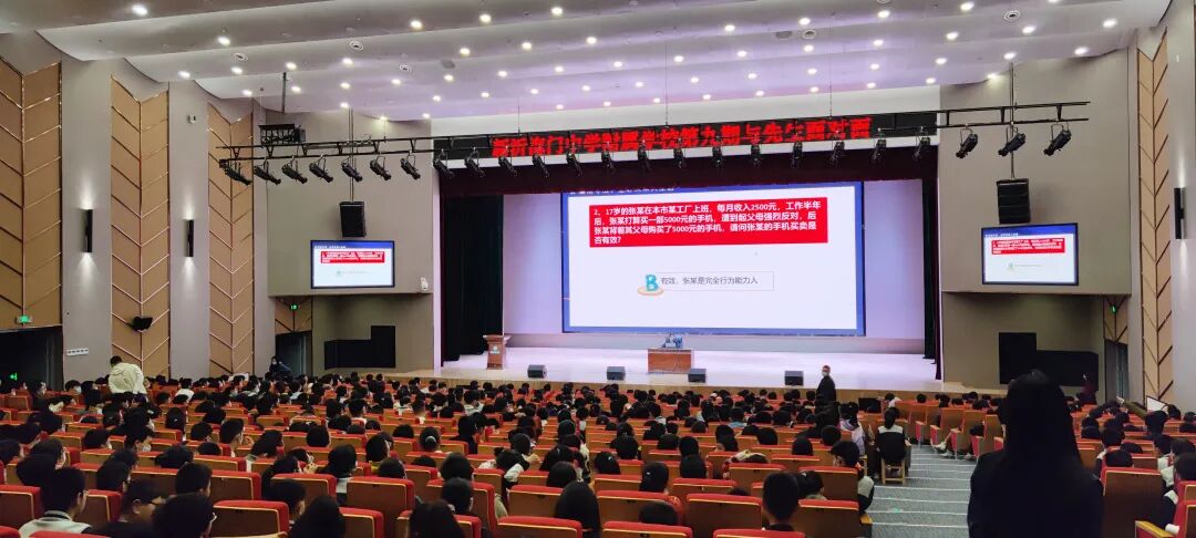 现场互动交流后,新沂海门附中宋军校长为李丹主任颁发聘书。李丹主任对同学们提出殷切希望,愿每位同学都能做坚守正义的人,崇尚公平的人,信仰法律的人,扣好人生第一粒扣子。