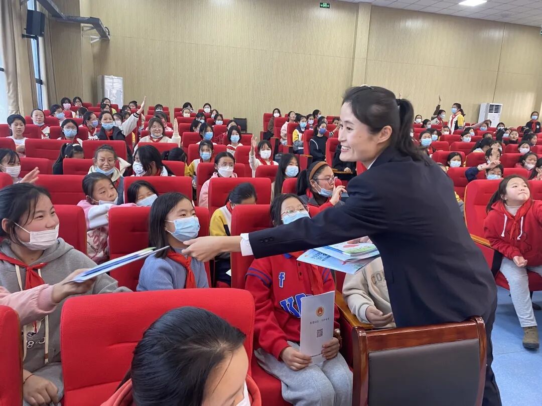 最后,丰县人民检察院第四检察部干警向同学们发放了《未成年人六大保护》、《防性侵漫画手册》,希望同学们在课后闲暇时光可以通过法治宣传手册巩固自己的法律意识,提高自我保护能力。