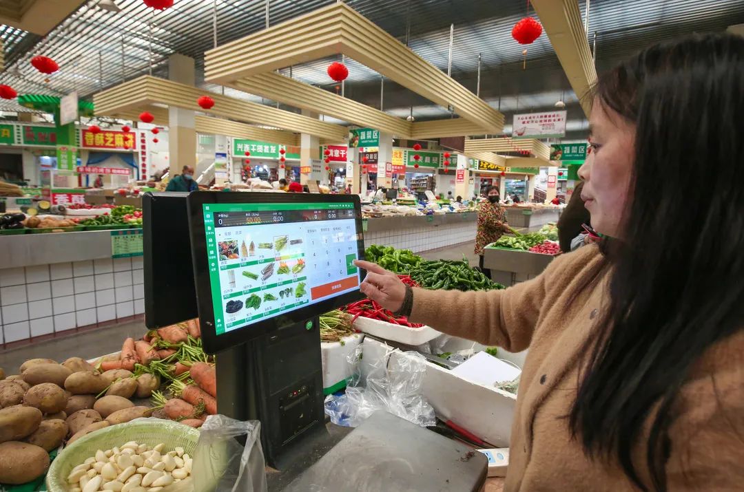 姚庄农贸市场的“智慧”还不止如此。采访中,该市场经理周广芝带着记者来到一家水果摊位前。“我们给每家商户都配备了一台智能电子秤,所有菜价进行联网,市民选购后,只需把东西往上面一放,价格就出来了,再扫码付款即可,都是无接触线上支付,十分便捷。”周广芝说。“我从2016年市场刚开业就在这里卖水果了,支付方式变化很大,现在都是线上,越来越便捷。”水果摊主吴金芝谈到这些年的变化,感触颇深。