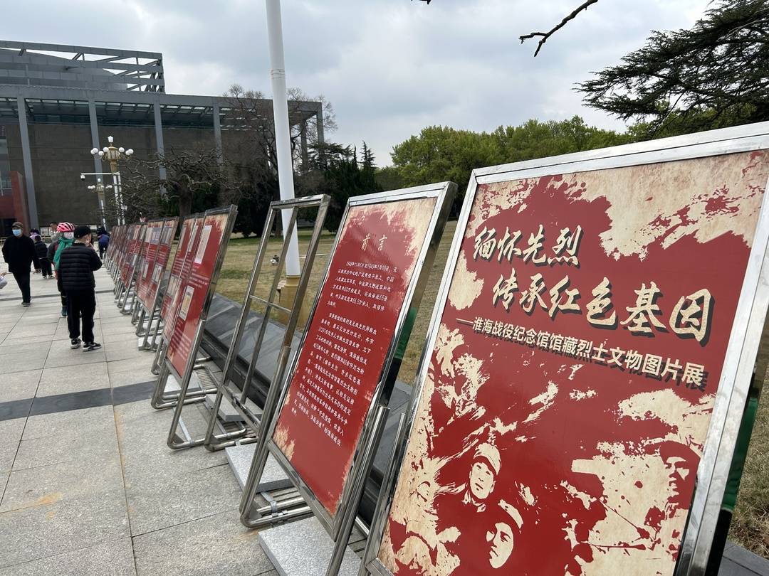 时近中午,从淮塔园区的东门驶进的鲁、豫、皖、浙的车量源源而来,此时的淮海战役纪念馆入口处,等候入馆的队伍一直延伸到纪念馆北面的徐州双拥展览馆前。队伍西侧,设置在此的《缅怀先烈 传承红色基因——淮海战役纪念馆馆藏烈士文物图片展》,通过烈士日记、家书,无声地讲述英雄的故事。