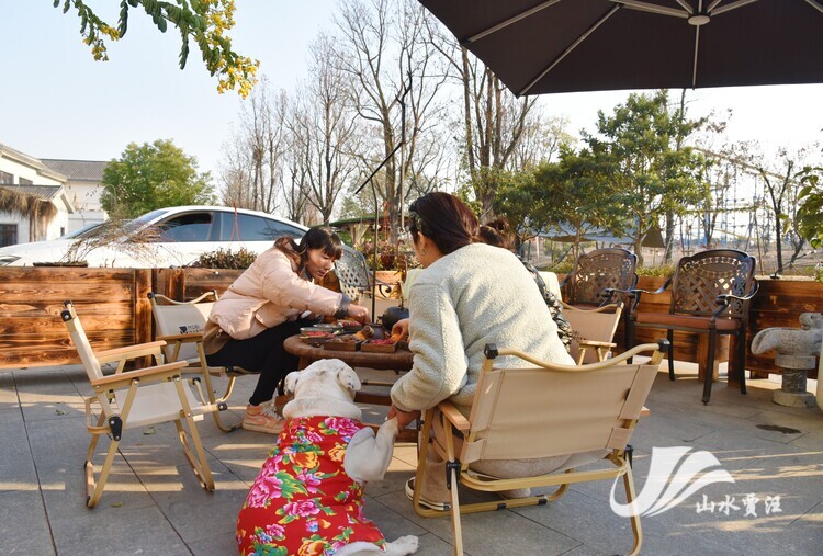 冬日,太阳还没下山,气温就降到了个位数,但在潘安湖二期一品潘安民宿,火红的炭炉里飘出缕缕茶香,铁网上烘烤着板栗、柿子、红枣、橘子等,另有精致茶点摆满桌子,三五好友围坐闲聊,冬季时节的氛围感被围炉煮茶拉满。邵琪是徐州市区过来的游客,她说城市生活节奏快,但自己心底对慢生活十分向往,所以经常约好友在这相聚。“和朋友一起到这边玩感觉很愉快,推荐大家过来打卡。”邵琪说道。