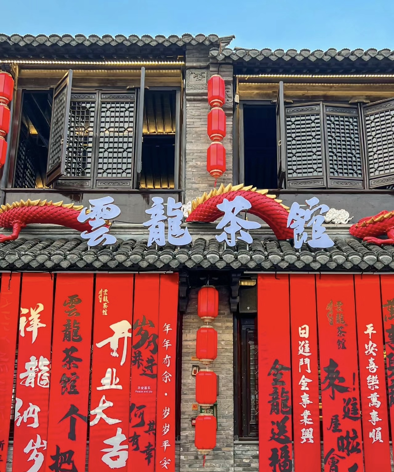 橱窗里,门头上,龙年伊始,云龙茶馆就换上了龙元素装饰,配上大气的书法挂帘和一排排中国风灯笼,国潮氛围感十足,开业不久就已名列美团云龙区茶馆人气排行榜第4名。“我们茶馆在推出徐州大碗茶的同时,还有徐州梆子戏、柳琴戏演出,可以给消费者提供多元化的品茶享受。”云龙茶馆老板李宽介绍。