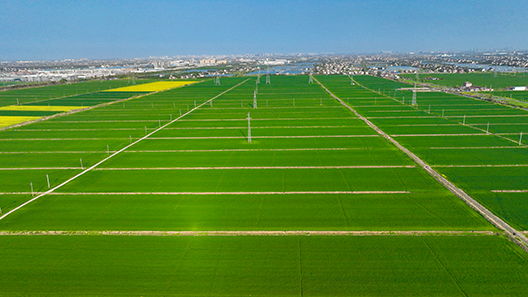暮春时节,和煦的微风拂过南通开发区苏垦农发南通分公司的粮田,一望无垠的麦田翻滚着层层绿浪,一片生机盎然。很难想象,十年前,这里还是数百块小而散的“巴掌田”“废弃地”,土质较差、交通不便,无灌排配套设施,农作物产量低。这块土地的蜕变还要从2013年说起。