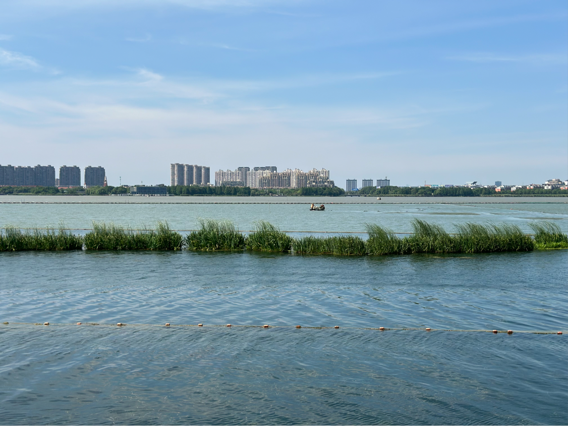 在保护太湖的宜兴实践中,蕴含着“加与减”的平衡之道。从空中俯瞰太湖宜兴段,太湖大堤内侧新建成的10个湿地,串珠成链,形成一道天然生态屏障,守护着太湖水。“这些湿地原来大多是堆积藻泥的废弃鱼塘,水体富营养化严重。”宜兴市生态环境局党组成员孙列锋介绍,作为“一圈一带一区”水生态建设中的关键一环,“太湖西部生态缓冲区”的建设能够进一步守护太湖水生态和水安全。