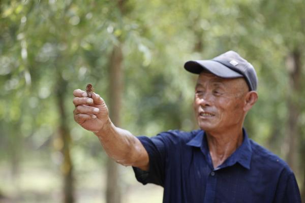 马青花介绍说,金蝉养殖的门道很多,含沙量太多的地块不适合养殖,养殖场地要保持相对湿润,地面不能有太多的枯树叶,柳树、杨树、苹果树等都适合养殖。金蝉是两年成卵、三年成虫,吸汁饮露后才破土而出。