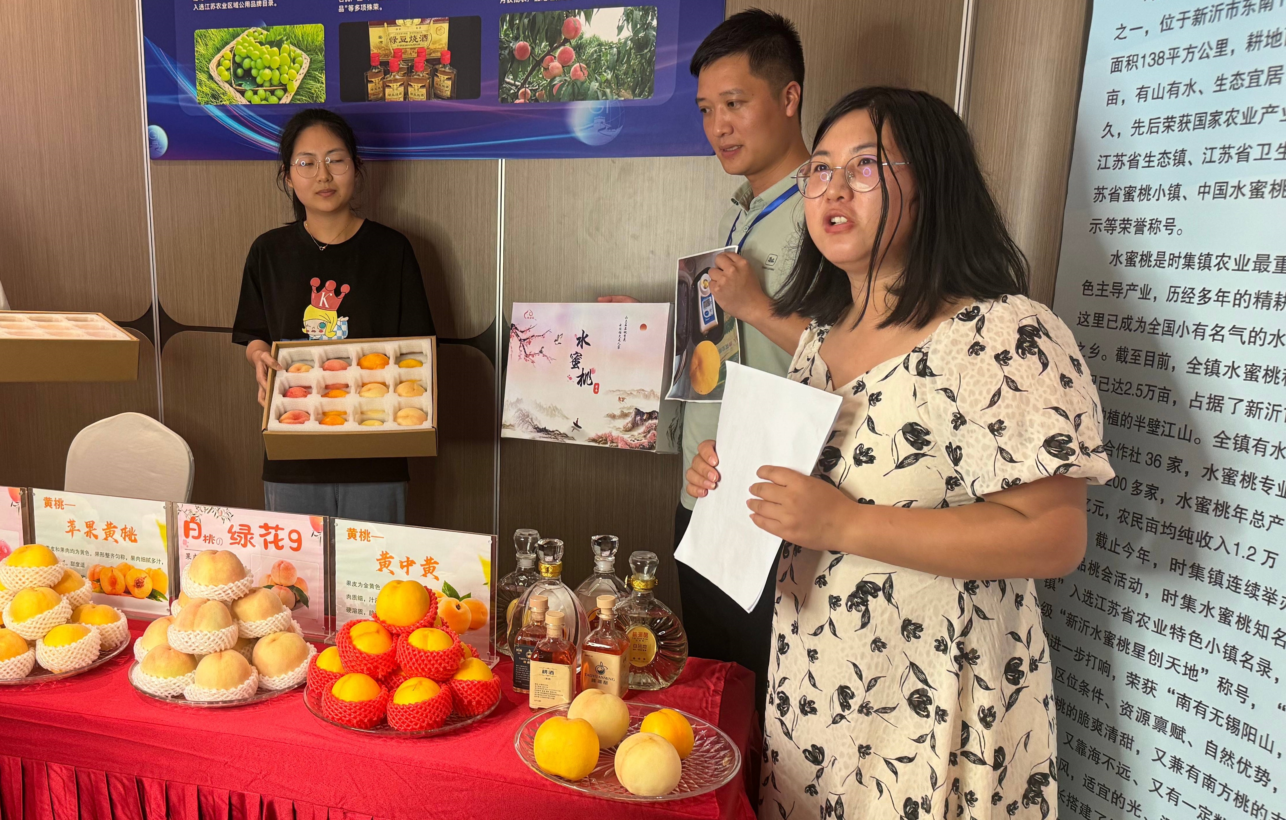“阿湖葡萄由南农大的专家进行技术指导,晶莹剔透、汁多肉美、甜香沁脾;新沂水蜜桃饱满圆润、汁水甘冽、香气浓郁;窑湾绿豆烧看起来是绿豆汤色,其实不是绿豆做的烧酒哦!”7月31日,江苏省徐州市地理标志工作现场会在新沂举行,徐州美食推荐官、抖音网红“九里二奶奶”,在直播间热情洋溢地向网友介绍徐州的地理标志产品。